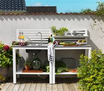 Bellac udekøkken hjørne - hvidt Forside » Diverse » Ude køkken og diverse møbler Vejl. udsalgspris 3.320,00 DKK Pris ved 1 Stk, 2.900,00DKK Antal På lager - Lev. 2-5 dage Beskrivelse Video Specifikationer Anmeldelser Køkkenmodul i hvidmalet aluminium og med sten bordplade. Modulet har følgende mål: Højde: 130 cm, bordhøjde 90 cm Dybde: 60 cm Længde: 60 cm 0 anmeldelser Produktet er endnu ikke anmeldt. Skriv en anmeldelse. Varenummer: 4849-5 Måske er du også interesseret i følgende produkter Bellac cover til hjørnemodul 250,00DKK Kunder købte også Bellac udekøkken med bordplade - hvidt 2.800,00DKK