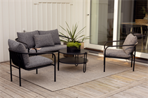 Havesofa i enkelt og stilrent design i pulverlakeret aluminium. Hynderne er med blødt syntetisk dun med et yderstof i bouclé inspireret olefin stof.