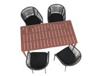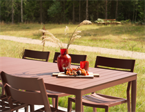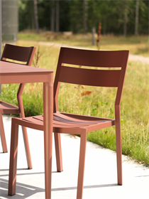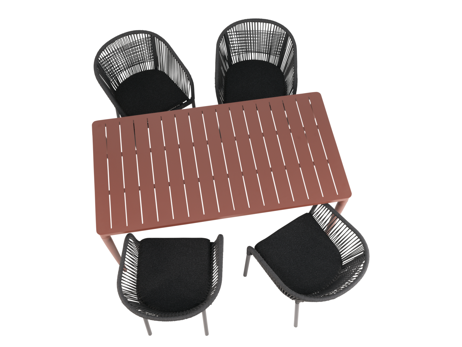 Vedligeholdelsesfrit have/altan bord i ny rødmalet aluminium og med runde hjørner. Bordet måler 76x144 cm og er 73 cm højt. Afstand til underkanten af bordet er 68 cm. Bordet har justerbare ben, så du altid kan få bordet til at stå uden at vippe.