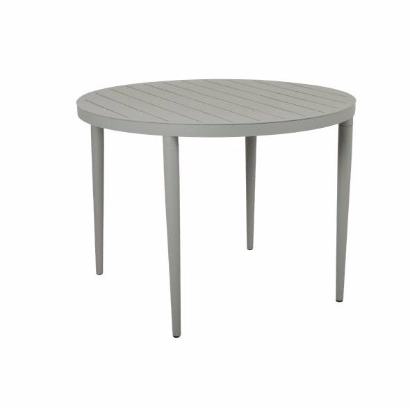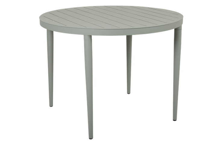 Vedligeholdelsesfrit have/altan bord i sart lysegrøn aluminium. Bordet har en diameter på 100 cm og er 73 cm højt. Afstand til underkanten af bordet er 68 cm. Bordet har justerbare ben, så du altid kan få bordet til at stå uden at vippe.