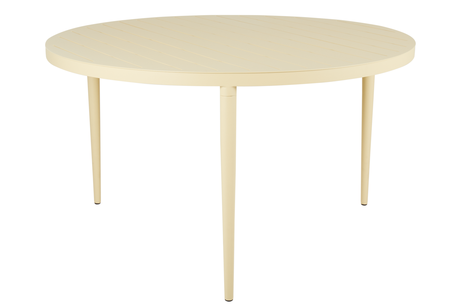 Vedligeholdelsesfrit have/altan bord i sart lysegul aluminium. Bordet har en diameter på 130 cm og er 73 cm højt. Afstand til underkanten af bordet er 68 cm. Bordet har justerbare ben, så du altid kan få bordet til at stå uden at vippe.