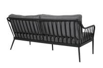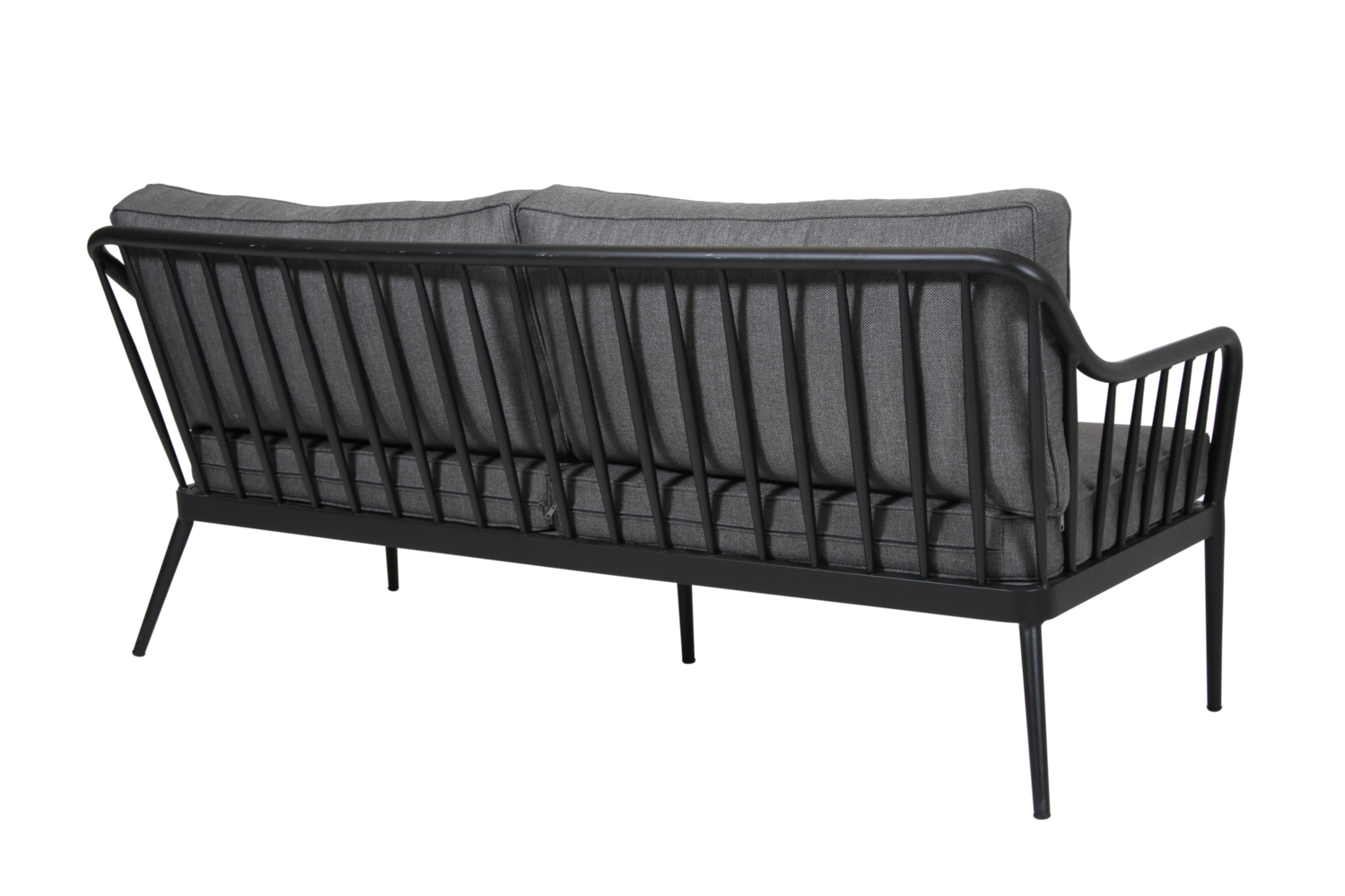 Enkel og stilren 2 personers havesofa i sort aluminium og med krafige grå hynder. Sofaen måler: