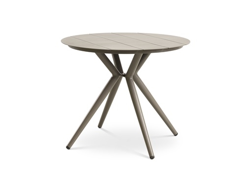 Stilrent og elegant havebord uden generende bordben. Bordet er fremstillet i aluminium og er helt vedligeholdelsesfrit. Bordet giver god plads til 2 personer og med god vilje 4 personer. Bordet har en diameter på 90 cm og er 75 cm højt.