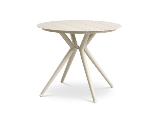 Stilrent og elegant havebord uden generende bordben. Bordet er fremstillet i aluminium og er helt vedligeholdelsesfrit. Bordet giver god plads til 2 personer og med god vilje 4 personer. Bordet har en diameter på 90 cm og er 75 cm højt.