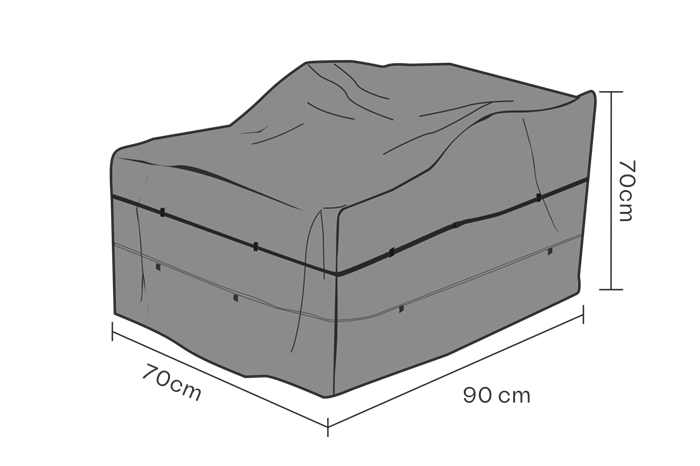 Beskyt dine havemøbler med et godt cover. Dette cover til loungestolen er i sort kraftig polyester og er vandtæt.
