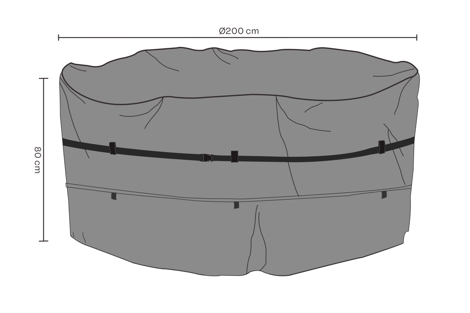 Beskyt dine havemøbler med et godt cover. Dette cover til rundt bord med stole er i sort kraftig polyester og er vandtæt.