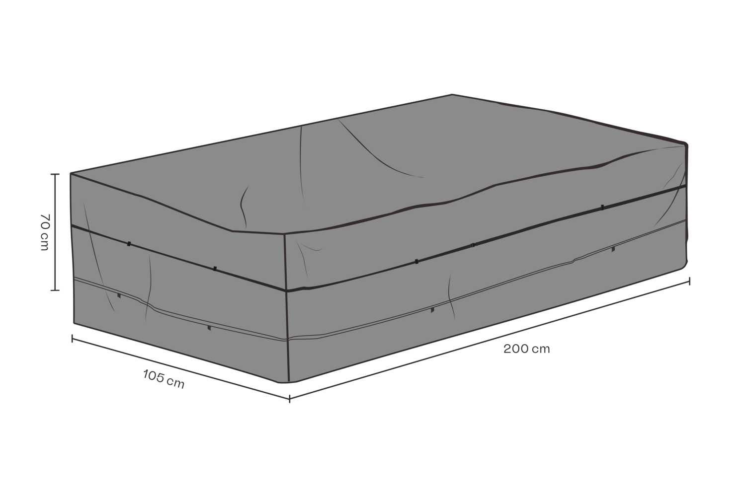 Beskyt dine havemøbler med et godt cover. Dette cover til havesofa er i sort kraftig polyester og er vandtæt.