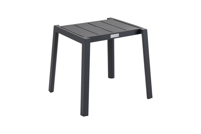 Lille let sidebord til relaxstolen eller solvognen i aluminium. Bordet møler 40 x 45 cm og er 39 cm hæjt.