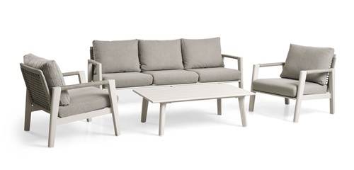 Haiti loungesæt sand Forside » Nyheder 2026 Vejl. udsalgspris 14.500,00 DKK Pris ved 1 Stk, 12.900,00DKK Antal Ikke på lager - Lev. 8-10 dage Beskrivelse Video Specifikationer Anmeldelser Loungesæt i sand farvet aluminium og med tykke beige hynder. Reb i ryg og sæde, der giver god affjedring og god siddekomfort. Sofaen er 205 cm lang - lang nok til du kan ligge i den. Sættet består af sofa, 2 loungestole og bord. 0 anmeldelser Produktet er endnu ikke anmeldt. Skriv en anmeldelse. Varenummer: 62468203858