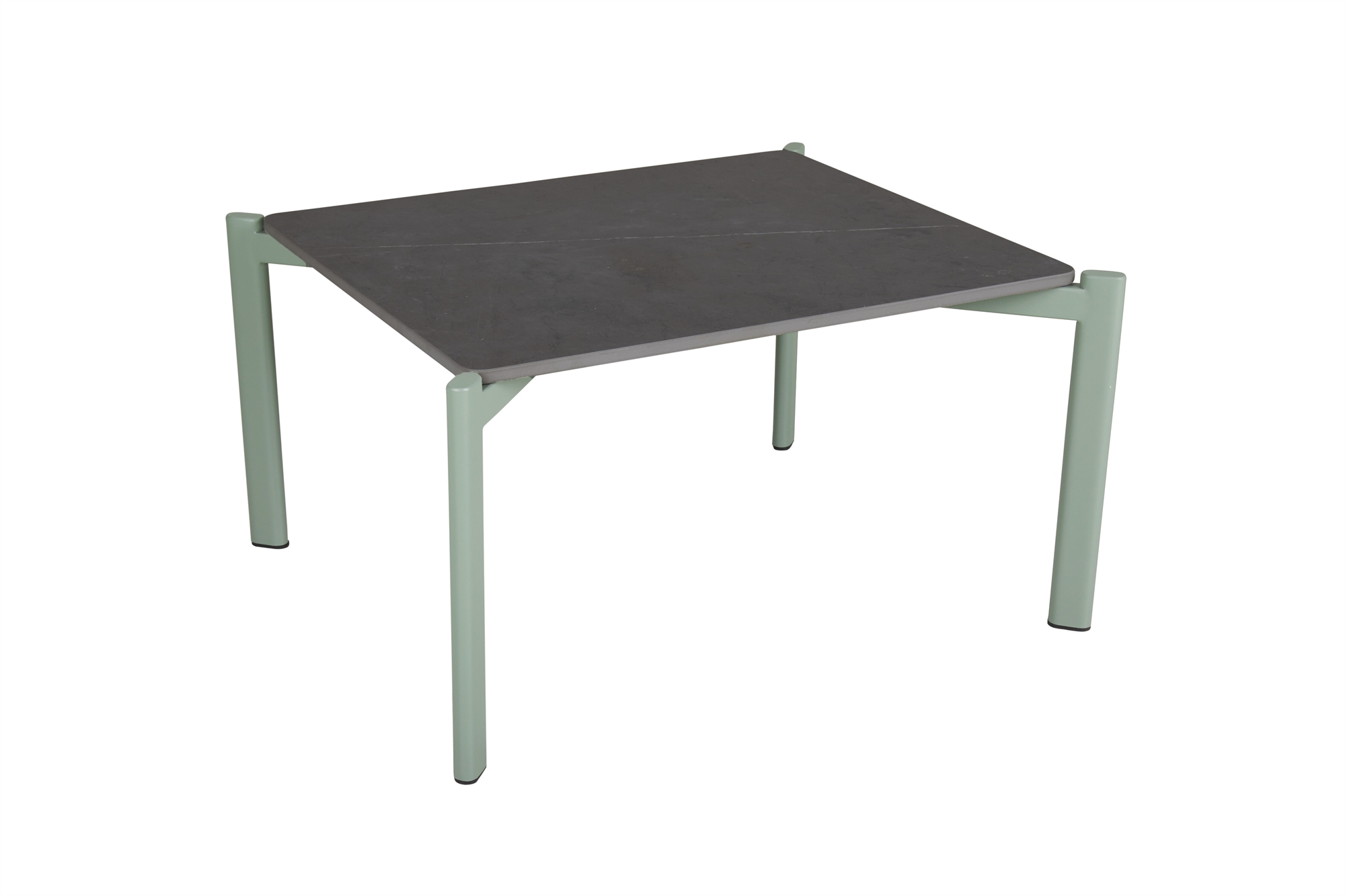 Smukt loungebord eller sidebord til dine loungemøbler. Stel i dusty green og med grå stenplade. Bordet måler 56 x 66 cm og er 40 cm højt