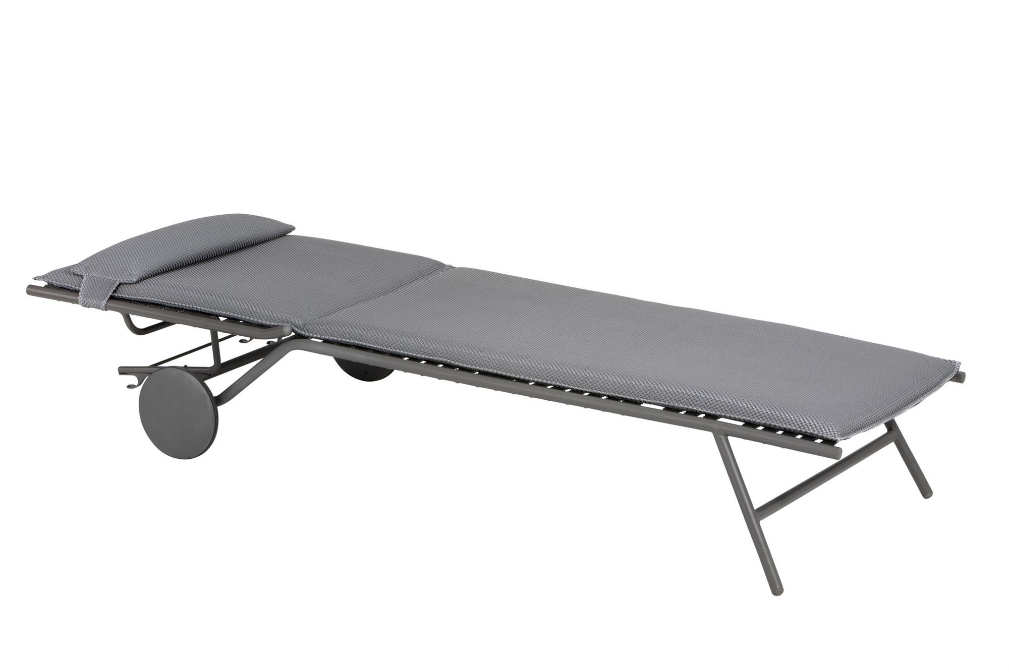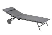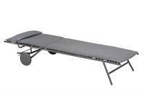 Solsengen Miami fra Lafuma kombinerer design og teknik i et elegant udendørsmøbel med unik komfort. Stabil konstruktion med rustbeskyttet stålramme, UV resistent og fugtafvisende tekstil. Hovedstøtte og hjul kan afmonteres og gør at solsengen er let at flytte. Øko-Tex® mærket garanterer giftfrie og miljøvenlige materialer.