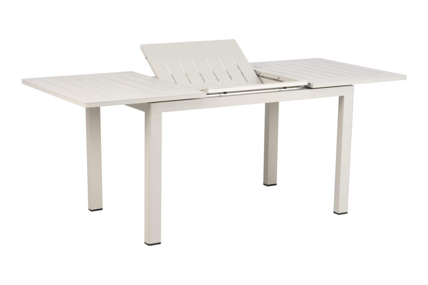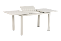 Lille vedligeholdelsesfrit havebord i lightgrey pulverlakeret aluminium. Der er plads til 4 personer til daglig, og kommer der gæster kan bordet slås ud og der bliver plads til 6. Bordet måler: