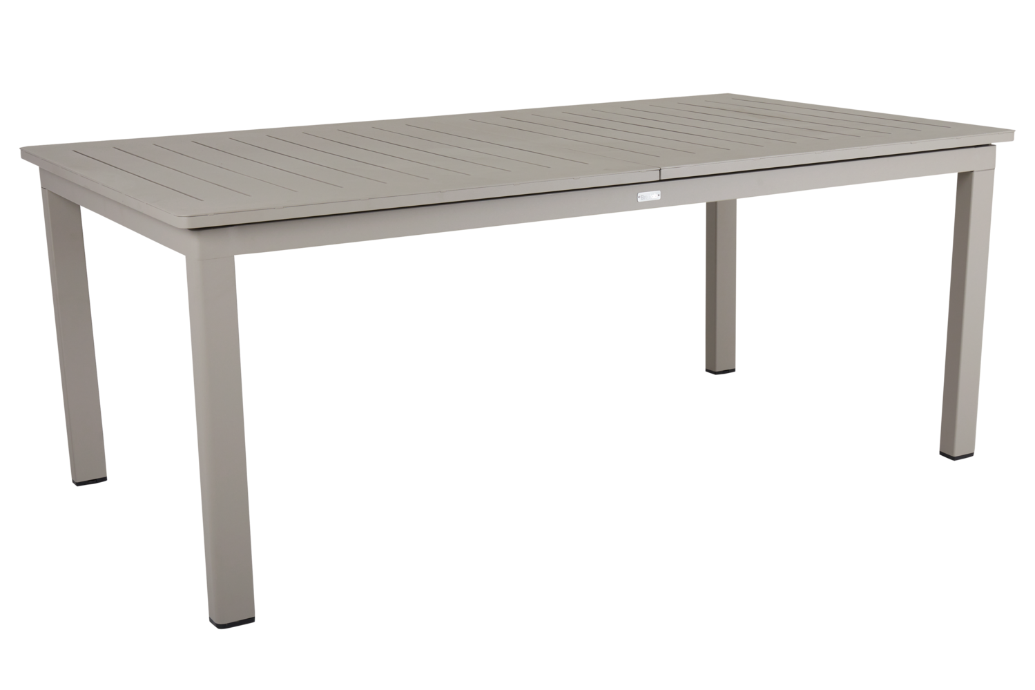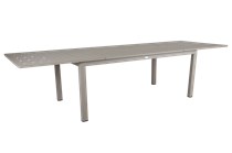 Stort vedligeholdelsesfrit havebord i i aluminium. Der er dog plads til 3 stole mellem benene og en på hver side af bord benene, så med god vilje, kan man sidde op til 14 personer ved bordet. Bordet måler: