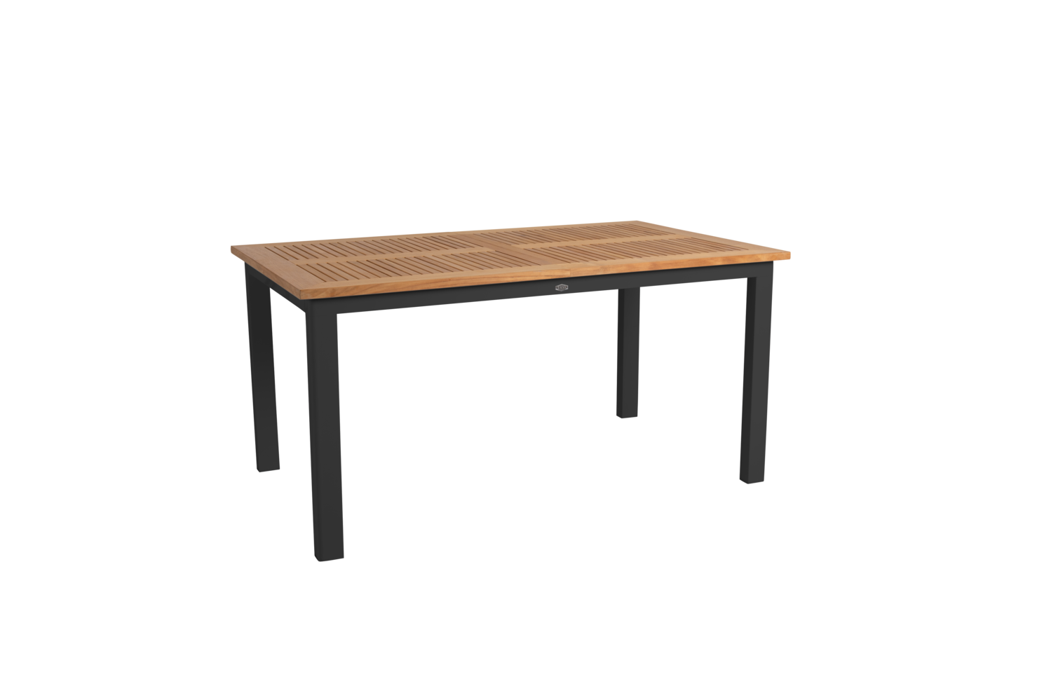 Praktisk havebord med stel i sort aluminium og med lameller af teak træ. Bordet måler 92 x 152 cm, bordet har en butterfly plade så bordet kan blive 210 cm langt. God plads til 8 - 10 personer. Bordet fås også med hvidt eller gråt stel.