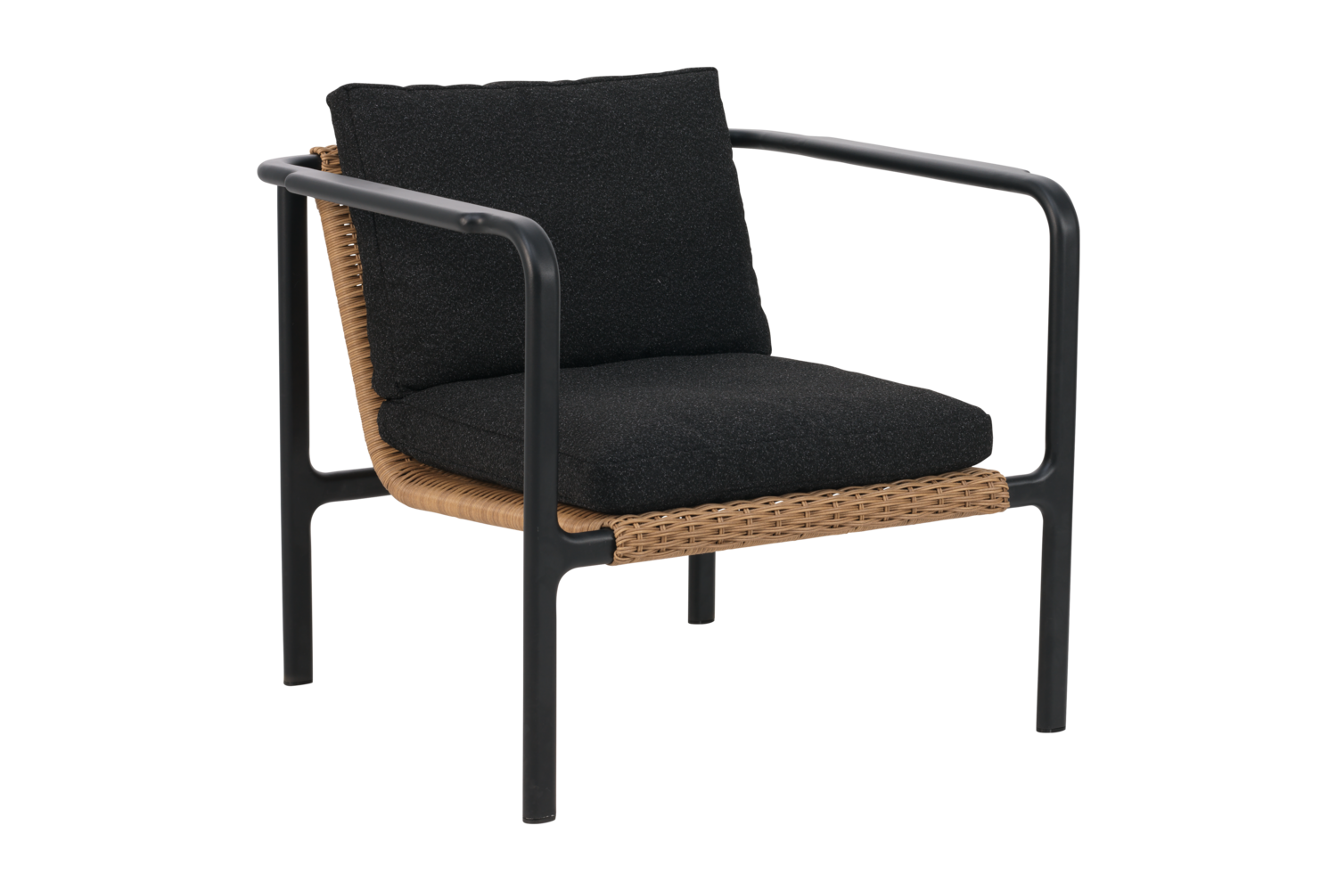 Ny lounge stol i let og elegant stil. Udført i aluminium og naturfarvet polyrattan og med tykke og bløde Teddy Black hynder. Sofaen har følgende mål: