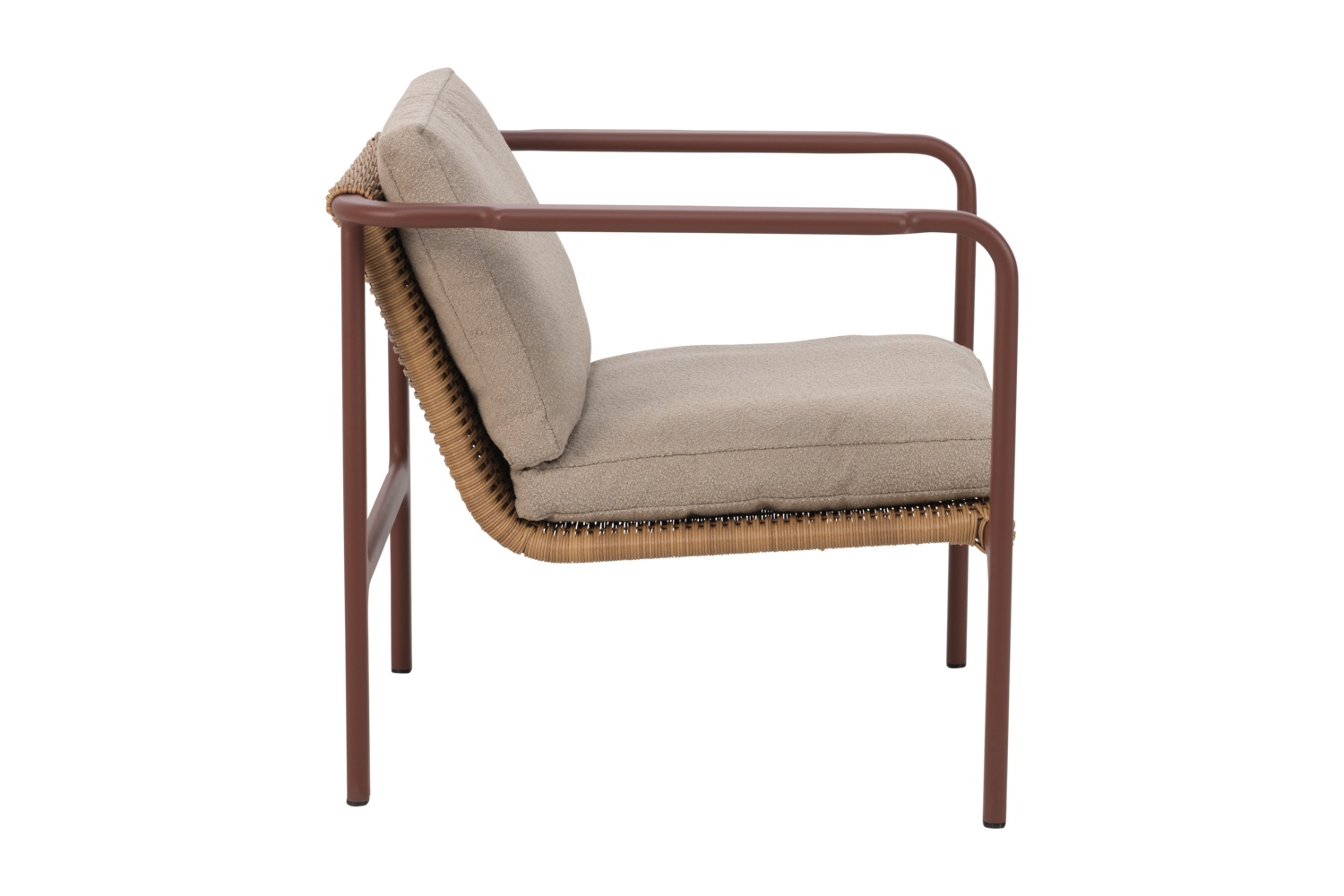 Ny lounge stol i let og elegant stil. Udført i aluminium og naturfarvet polyrattan og med tykke og bløde Teddy Beige hynder. Sofaen har følgende mål: