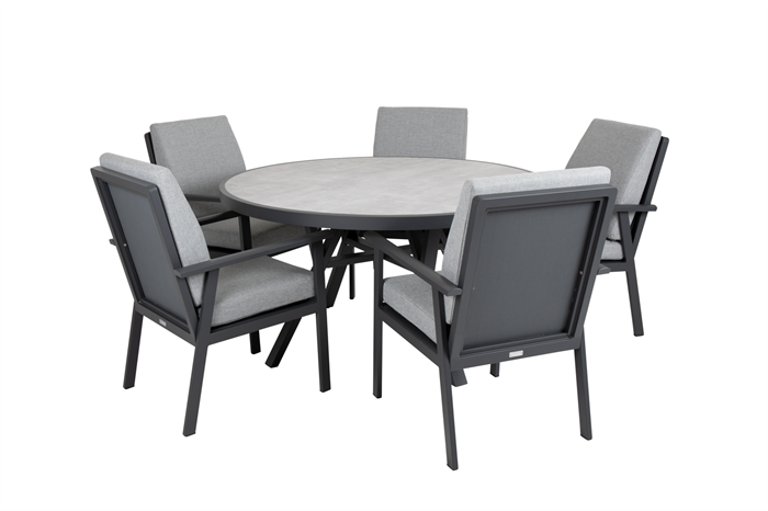 Lækkert Diningsæt i Aluminium textline stole med vandafvisende hynder