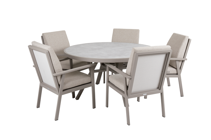 Lækkert Diningsæt i Aluminium textline stole med vandafvisende hynder